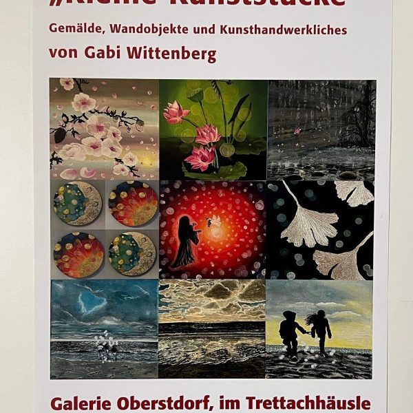 In Vorbereitung auf meine Ausstellung vom 27.5.2023 bis 12.6.2023 im Trettachhäusle in Oberstdorf sind noch einige Arbeiten in unterschiedlichsten Formaten und Stilen entstanden. Ansonsten bestand die Arbeit im künstlerischen Bereich darin, alles für dieses Einmal-im-Leben-Ereignis herzurichten.