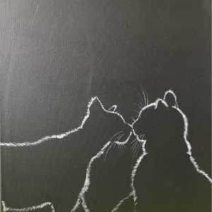 Nun haben sich die Katzensilhouetten und ein weiterer Esel dazu gesellt.