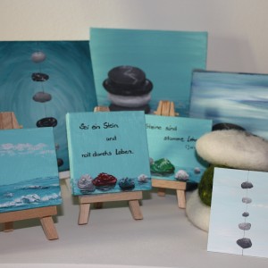 So können Sie sehen, wie schmückend die Miniaturen sind, egal ob im Zusammenspiel mit Büchern oder als Mitspieler in Arrangements mit Windlichtern und Blumen. Sie stehen aber auch für sich allein in kleinen Nischen oder auf freien Regalflächen. Natürlich kann ein kleines Kunststück Sie auch wunderbar auf Ihre Geschäftsreisen begleiten. Im Nu haben Sie etwas Persönliches in Ihrer Unterkunft aufgestellt und fühlen sich vielleicht ein wenig mehr zuhause.