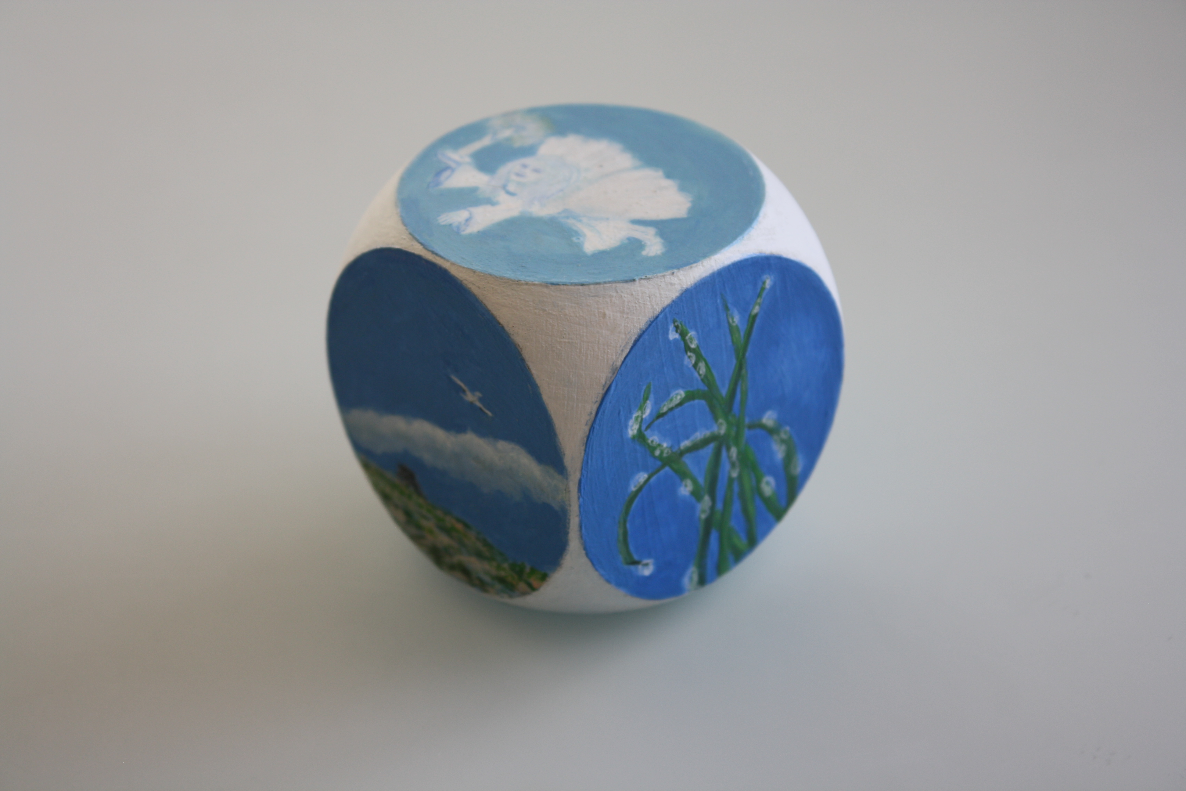 Ein neuer Kubus ist zustande gekommen! Die Würfelform eignet sich hervorragend für wechselnde Ansichten. Er ist rundherum mit einer Lackschicht überzogen, um die feinen Gemälde zu schützen. Ein kleines Kunststück im besonderen Format.