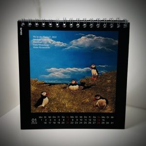 Tischkalender, handliches Format, handsigniert: 20€, die letzten drei Bilder dieses Albums als Beispielblätter des Kalenders
